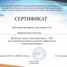 Сертификат участника Весенняя школа - 2024